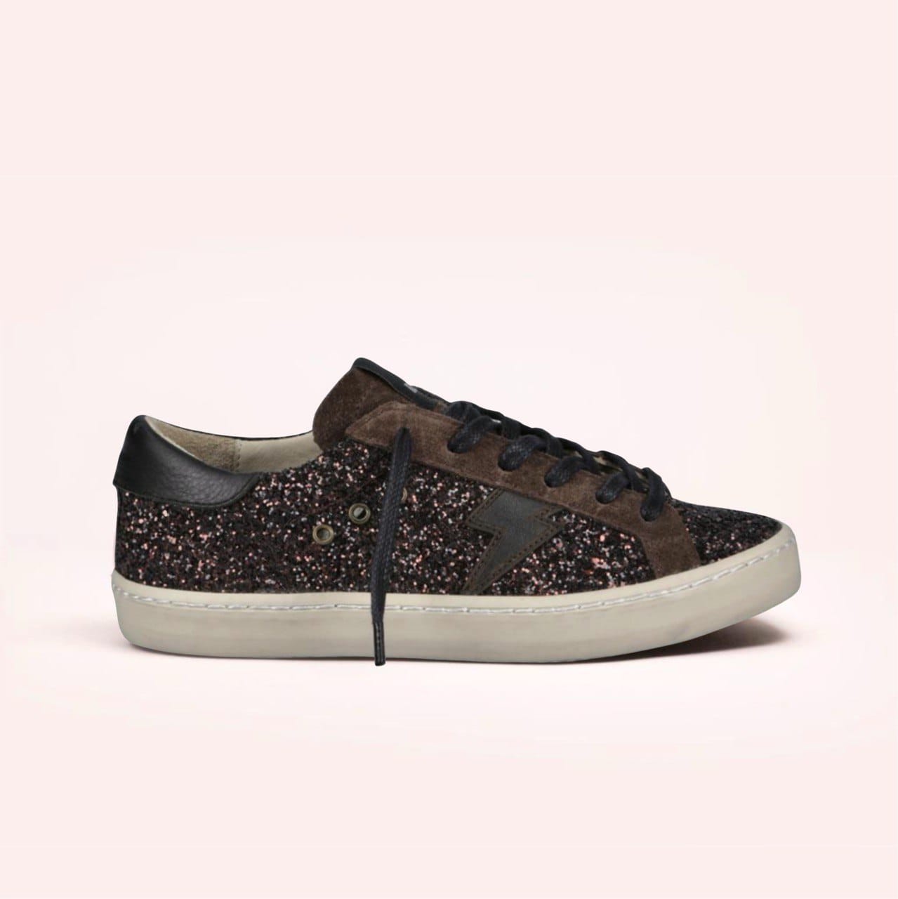Zapatillas de Glitter italiano “Bronce”, y cuero. Plantilla de 17 mm, Suela de Caucho banda cosida.